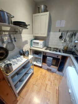 Full cooking facilities are provided for our guests in our small modern kitchen. These include an oven, hob, microwave, toaster, fridge, dishwasher and all the pots and pans you could need. Free tea and coffee are provided and cereal is available. If you’d rather eat out, there are cafes and a good selection of local restaurants and pubs. with further choice in Peebles.