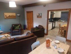 There is a large well-equipped kitchen/diner with a table/seating for 4 to 6 , range cooker, fridge/freezer, dishwasher and microwave.